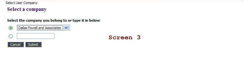 After you have agreed to the terms of usage, you will be asked to identify what company you are associated with.