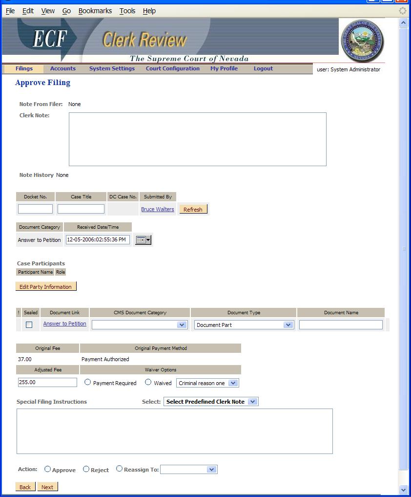 - Reassign To - This pull-down list allows you to assign this filing